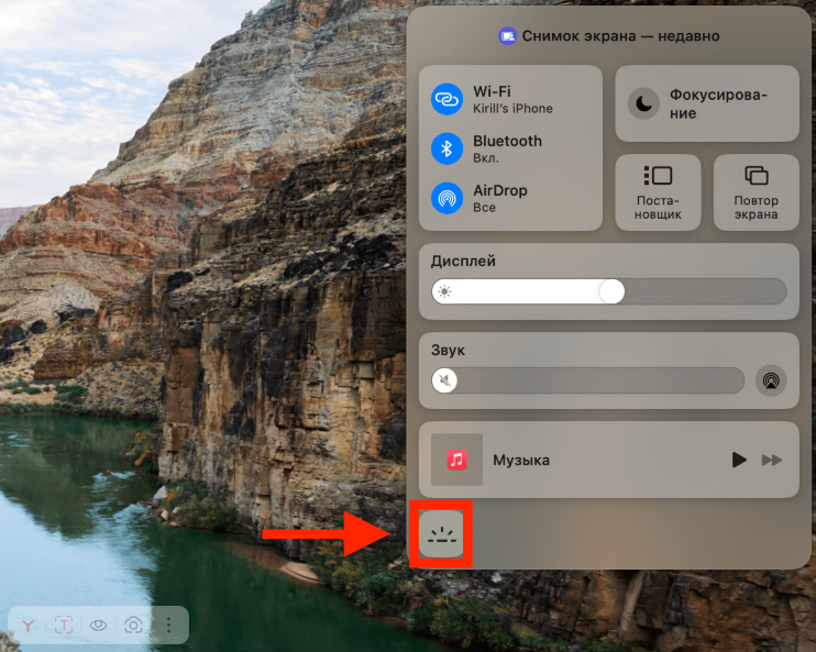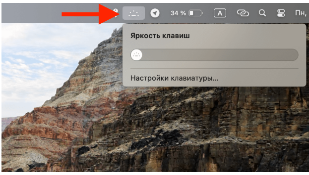 После этого в верхней строке меню (правый угол) появится удобный ползунок для точной регулировки яркости подсветки.