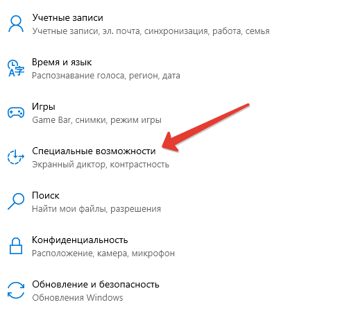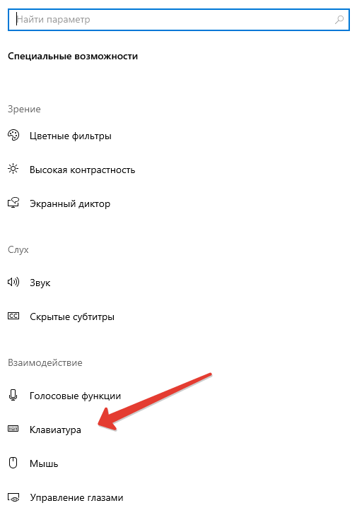 - Перейдите в раздел «Специальные возможности» → «Клавиатура».