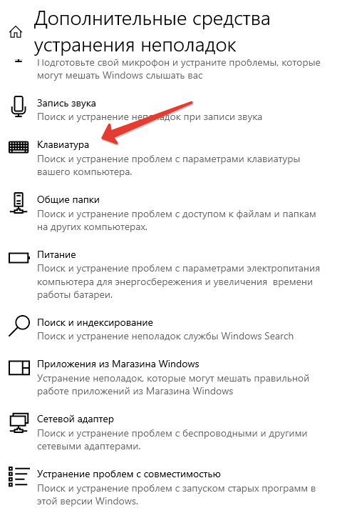 - Воспользуйтесь встроенными средствами устранения неполадок. В Windows 10/11 зайдите в «Параметры» → «Обновление и безопасность» → «Устранение неполадок» → «Дополнительные средства устранения неполадок». Найдите и запустите опцию «Клавиатура».