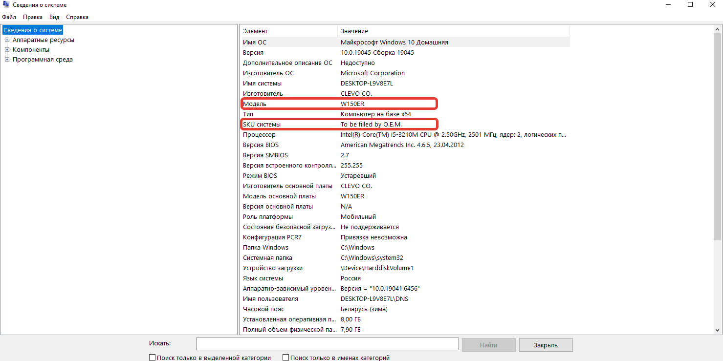 В открывшемся окне найдите строки «Модель» и «SKU-системы». Скопируйте эти данные и введите их в поиск на сайте бренда вашего ноутбука. В разделе с характеристиками клавиатуры будет указано, есть ли подсветка.
