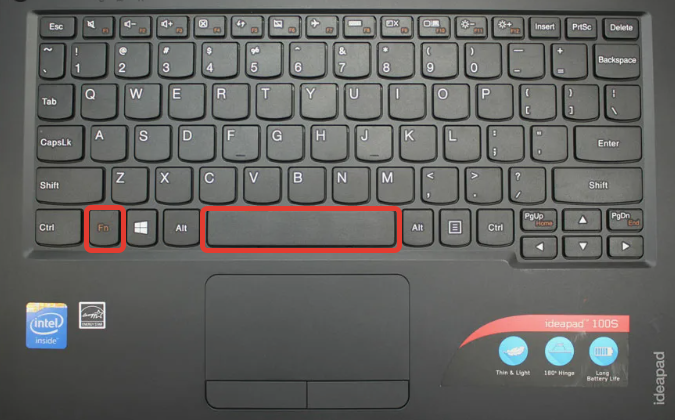 - Классические модели (ThinkPad): Fn + пробел. Короткое нажатие включает подсветку, повторное — увеличивает яркость, третье — выключает. Длинное нажатие может активировать другую функцию.