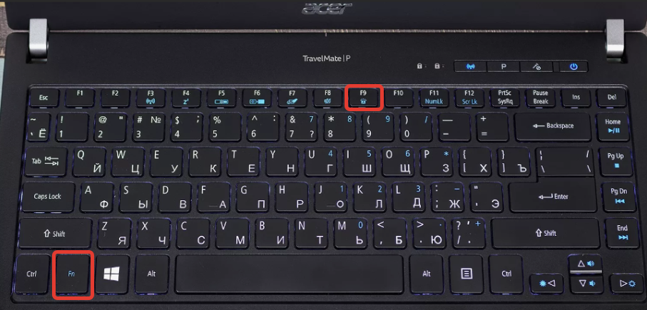 Самые частые комбинации — Fn + F9 (уменьшение/выключение) и Fn + F10 (включение/увеличение).