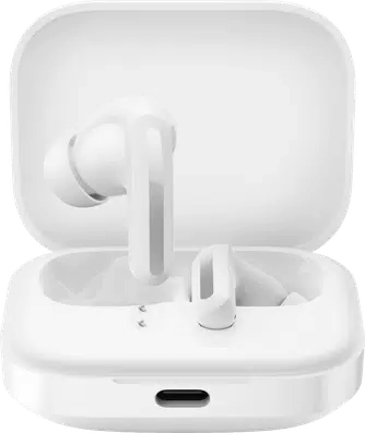 Xiaomi Buds 5 упакованы в компактную картонную коробку, на которой изображены сами наушники и указаны их основные особенности. Комплектация стандартная: руководство пользователя, зарядный кейс и кабель USB-C.